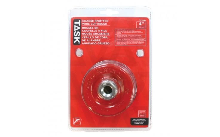 – 5/8″-11 threaded nut arbor hole- 8,500 Max RPM- Industrial Grade: use with high speed small grinders for rust removal, deburring and weld cleaning- 4″ Coarse Knotted Steel Wire