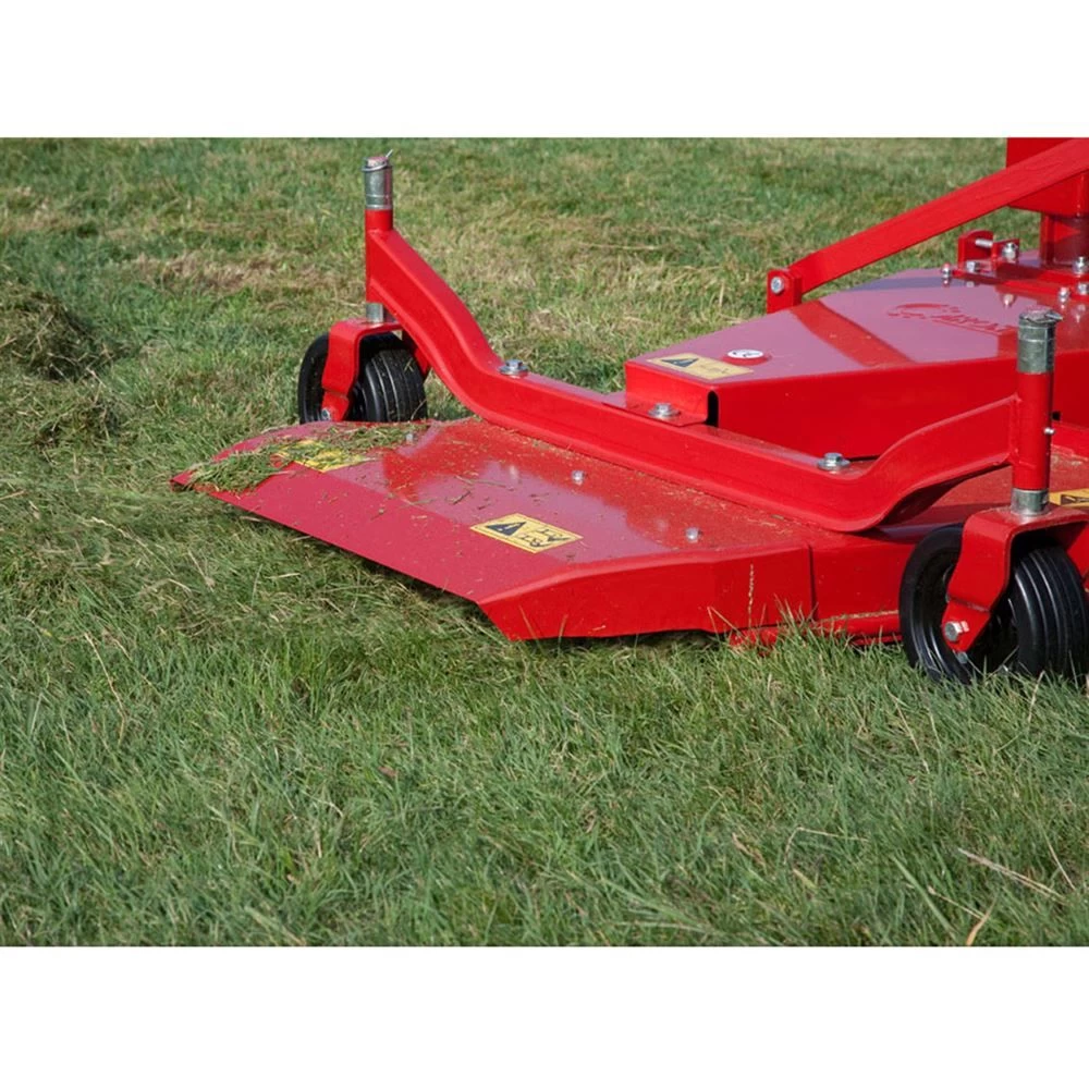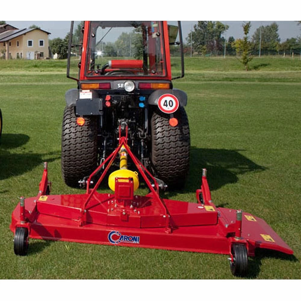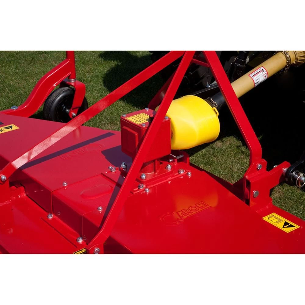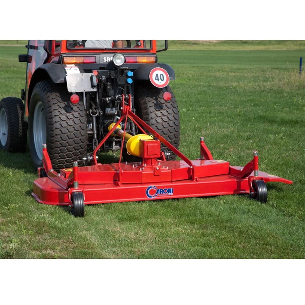 TC480NSLD – 48″ Caroni Estate Side Discharge Mower. The versatility, simplicity and safety are the three main features of the TC rear mower. It is designed and produced with the most up-to-date technologies and the most advanced construction systems, it is ideal for use with tractors ranging between 12 and 20 HP. The hitch is a category 0, and the PTO speed is 540 RPM. This mower has 3 blades, with a blade speed of 3250 RPM and a cutting width of 48″ and can be used for any type of grassy area from fields to golf courses, parks to motorway grass verges, and lawns to sports grounds. Four extra-large wheels always ensure a precise cut, which may range from 1″ to 4″. All models are based on a support chassis consisting of a single cold-drawn block. Toughness and compactness are just two more features that apply to this adaptable, easy-to-handle machine. Some other features are its easy-to-adjust cutting height, which can be altered simply by shifting the spacers mounted on the fork shaft, its 3rd anchoring point, which “floats” to allow the machine to follow the contour of the ground, and its easily-regulated belt tension, which simply requires the adjustment of a single screw. The mower has seven easily-accessible greasing points and the thickness of the steel on this mower is 9 gauge.