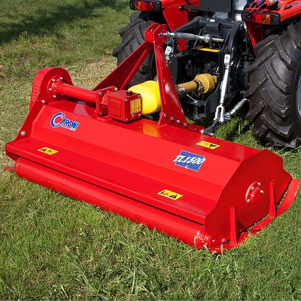 TL1500FSC – 59″ Caroni Flail Mower. The tough and simple-to-use TL series flail mower is best used in cutting grass on any type of terrain. This mower has a rotor, a type F that is fitted with twice the number of blades that give a more accurate and closer cut. This Caroni flail mower has a fixed tractor hitch, and their drive is provided by 2 trapezoidal belts with automatic spring-adjusted tensioner.