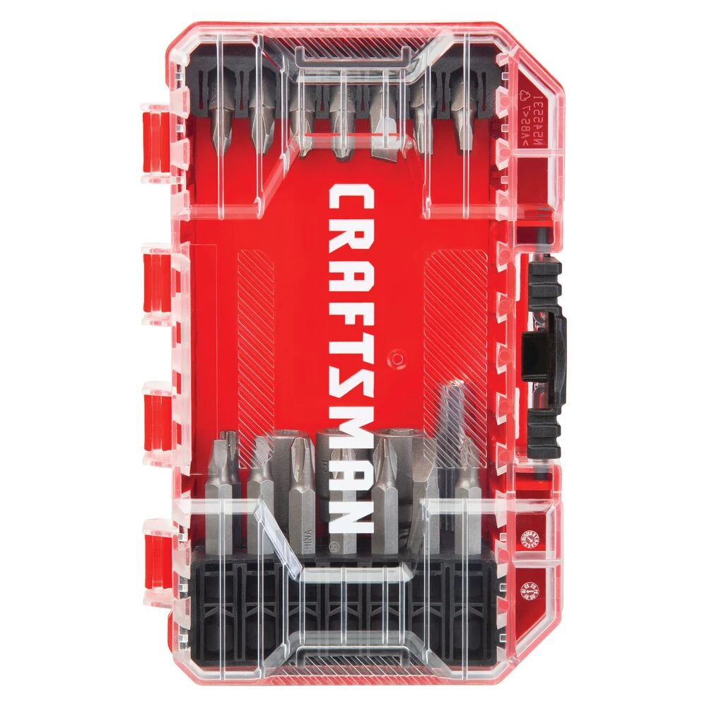 19PC DRIVE SET,Constructed with shock-resistant tool steel for maximum durability,CNC-machined bit tip ensures precise fit in screw heads reducing opportunity for cam-out,Includes: (7) 1-in bit tips: PH1 (1), PH2 (2), PH3 (1), SQ2 (1), SL 8-10 (1), T25 (1); (8) 2-in power bits: PH1 (1), PH2 (2), PH3 (1), SQ2 (2), SL 8-10 (1), T25 (1); (3) nut drivers: 1/4 (1), 5/16 (1) and 3/8-in (1); and (1) magnetic bit tip holder,,,,.